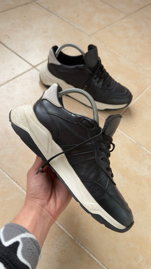 Bağcıklı, siyah ve gri renkli erkek spor ayakkabısı, kauçuk tabanlı, sokak tarzına uygun ve rahat kullanımlık. Resimlerde görüldüğü gibi temiz ve sorunsuz