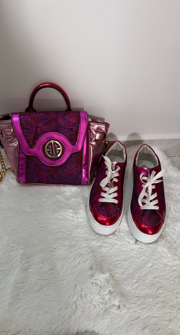 Elle simli -Bağcıklı Pembe Bağcıklı Sneakers çanta kombin