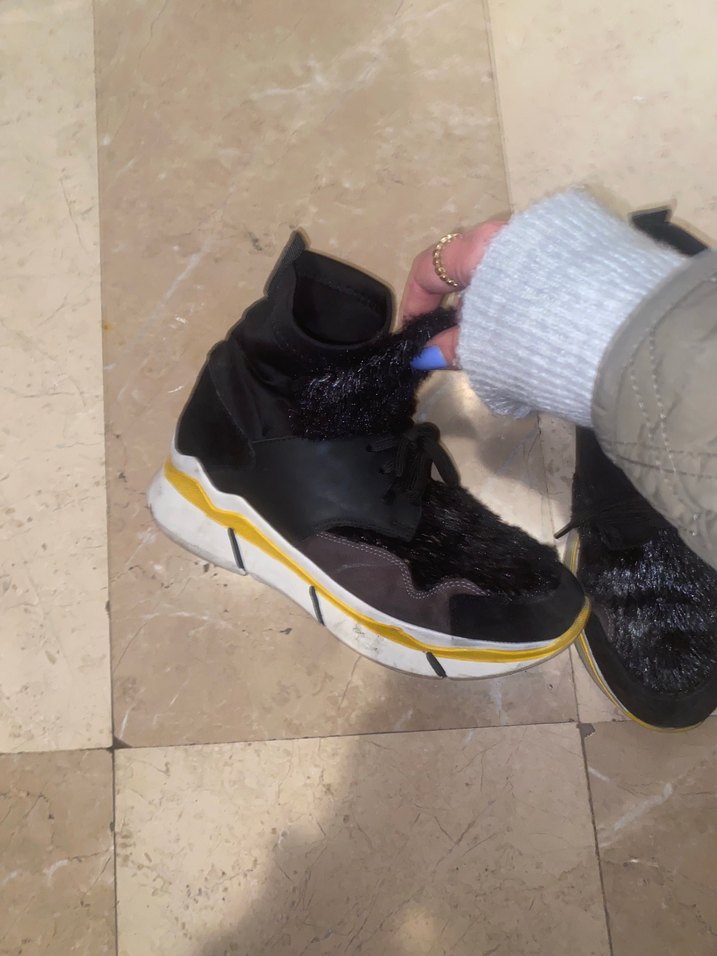 hafif yüksek tabanlı çorap gibi giyiliyor önü kürk detaylı az kullanıldı rahat spor ayakkabı gibidir bi sıkıntısı yoktur
