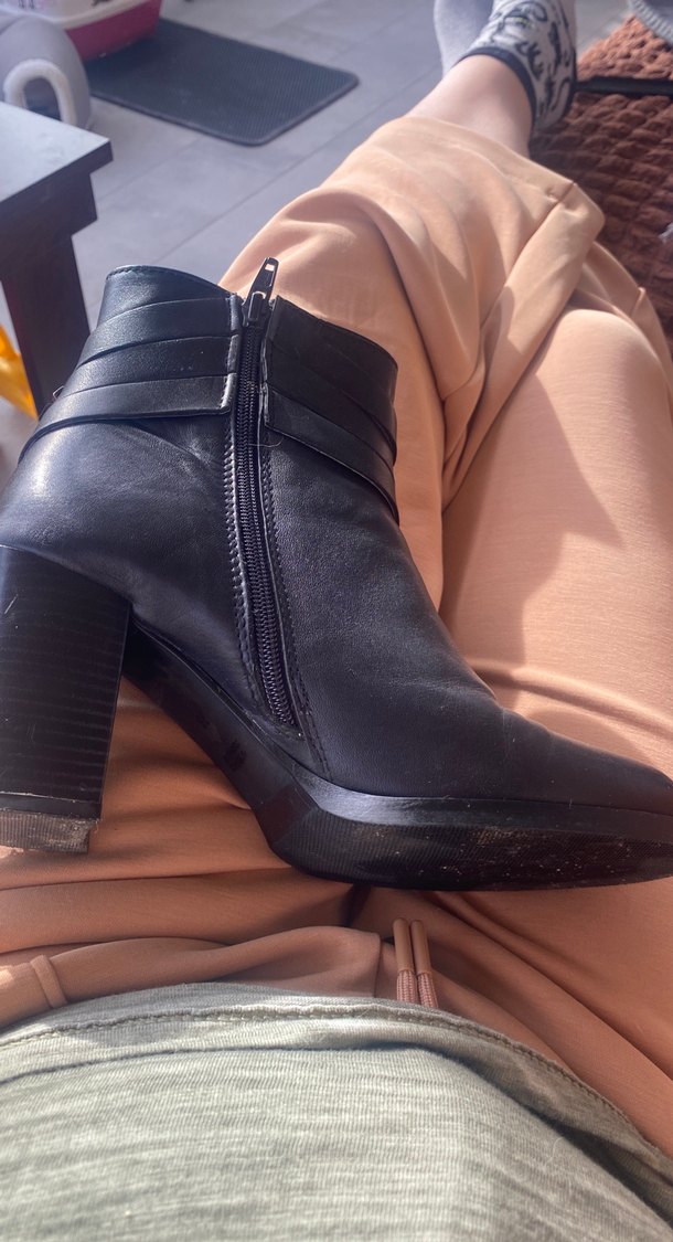 Siyah hakiki deri kadın botları, blok topuklu ve arkada çoklu tokalarla gotik tarzı günlük kullanıma uygun şekilde birleştiriyor. Düz yüzeyli ve trend görünümlü. İtalya’da dizayn edilmiş ve el yapımıdır , 2 kere giyildi