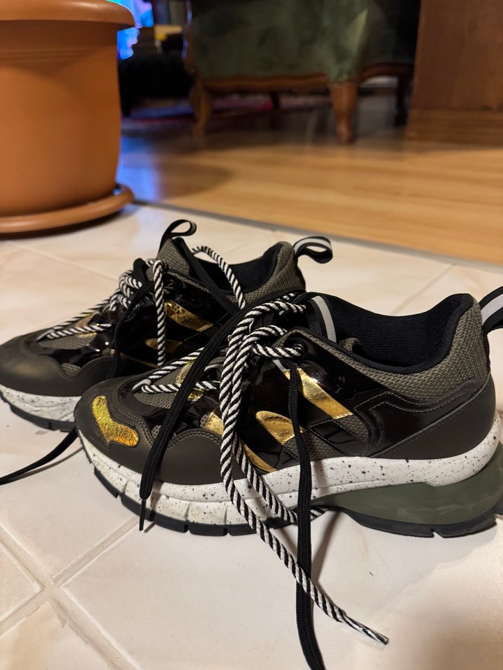 Siyah haki dore desenli, bağcıklı, spor ayakkabı, sokak modası , yüksek topuk platform ve 39 numara için uygundur.