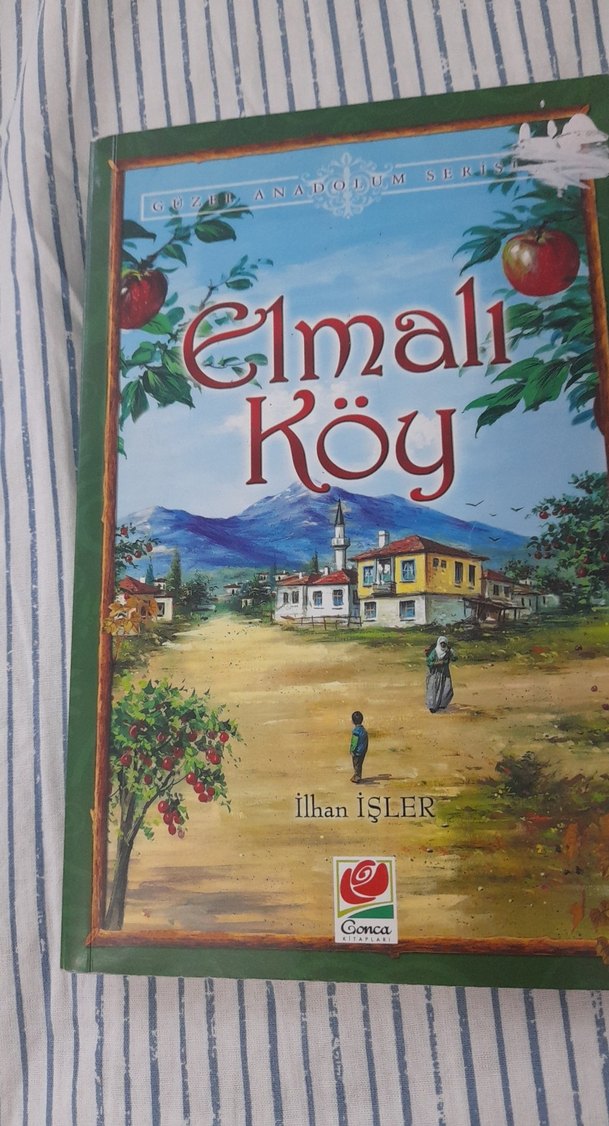 İlhan İşler'in 'Elmalı Köy' kitabı, geleneksel evler ve doğa ile kırsal yaşamı yansıtan bir köy sahnesi sunuyor.