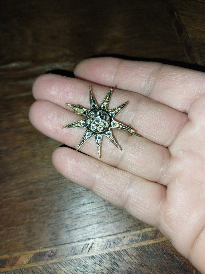 Parlak altın renkli bu kadın broşu payetlerle süslenmiş desenli yıldız şeklinde vintage bohem tarzındadır. Düğünler ve retro görünümler için uygundur. ✨