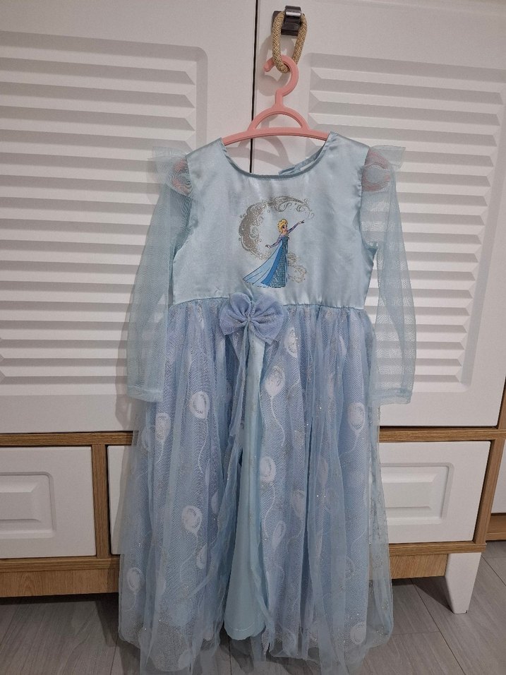 elsa Mavi Uzun Kollu Kız Çocuk Elbisesi