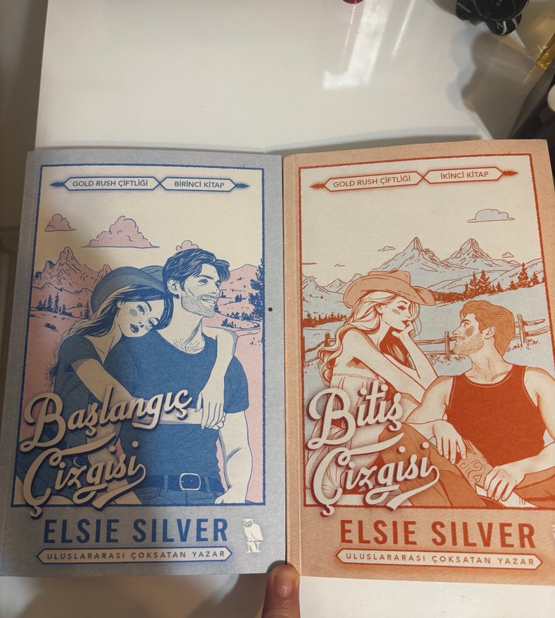 Uluslararası çok satan yazar Elsie Silver'dan Gold Rush Çiftliği serisi iki kitap: Başlangıç Çizgisi ve Bitiş Çizgisi.