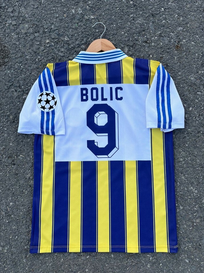 Fenerbahçe 1996 iç saha Şampiyonlar Ligi Elvir Bolıc forması. Sıfır üründür poşetinde gönderim yapılacaktır. ürünün göğüs kısmında Manchester United’ı 40 sene sonra Fenerbahçe’nin devirdiği karşılaşmanın özel maç detayı yer almaktadır. Müthiş bir koleksiyon ürünüdür.
