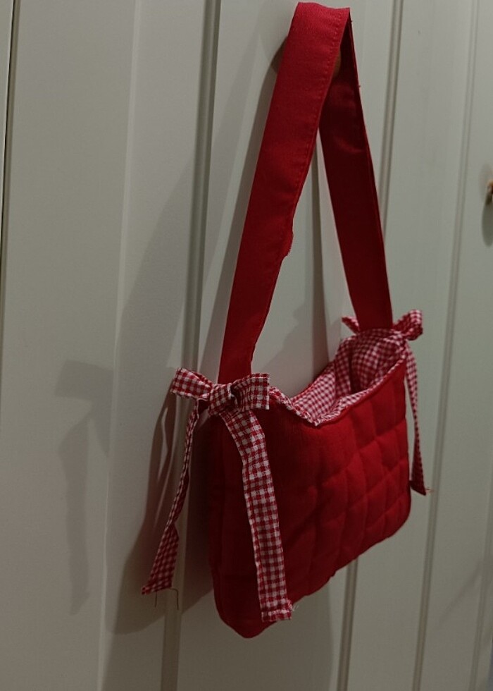 Pötikare ve kırmızı içi elyaflı çanta