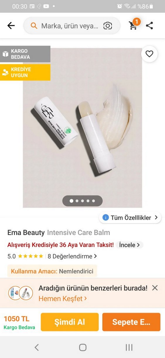 Ema Beauty Intensive Care Balm, dudaklar için nemlendirici bakım sağlar. Hafif beyaz balm formülüyle dudakları yumuşak ve nemli tutar. neredeyse hiç kullanılmadı . aloevera .şu anki satış fiyatı 1000 TL civarında .