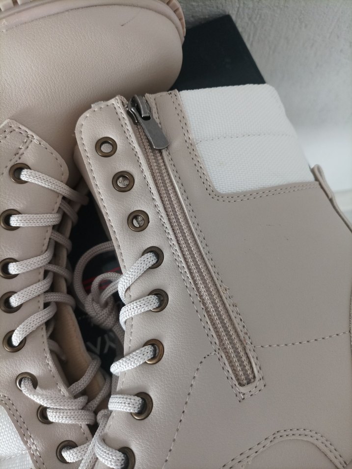 Bej renkli deri kadın botları, dolgu topuklu ve fermuarlı, sokak stiline uygun ve günlük kullanıma ideal. Desensiz ve şık.