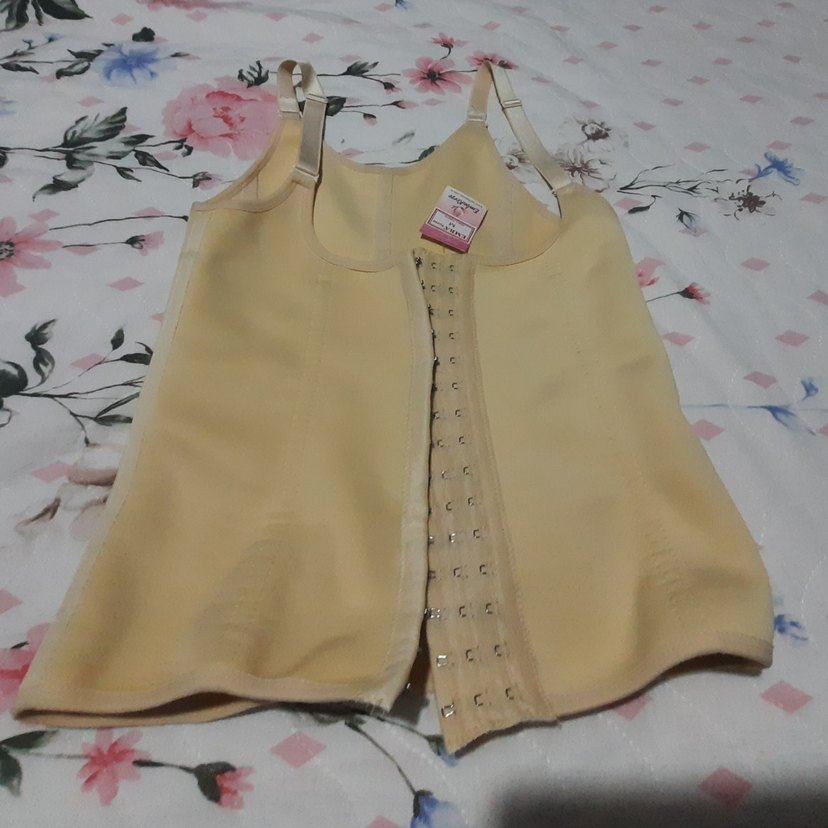 Bej renkte, ayarlanabilir askılı ve ön kancalı kapamalı, vücuda şekil vererek oturan bir korsedir. M 40 bedendir sadece denenmiştir temizdir.