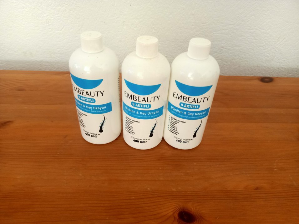 Embeauty 9 Aktifli şampuan, saç dökülmesini önler ve saçın daha hızlı uzamasına yardımcı olur. 400 ml hacminde, saç bakımı için uygundur. 3 adet var 1 adet fiyatıdır