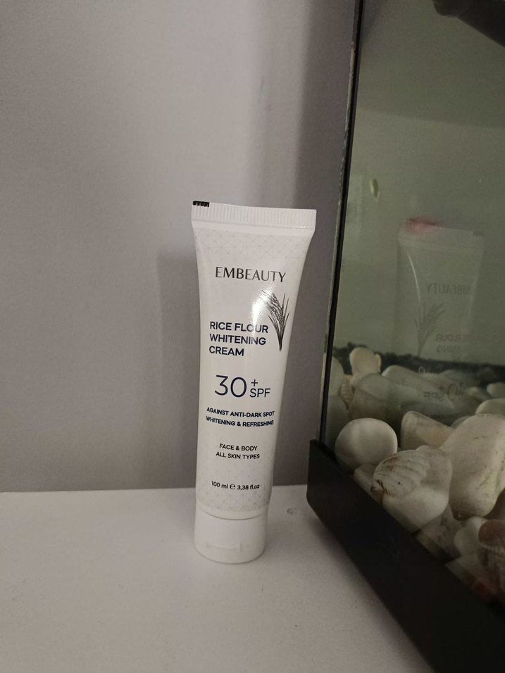 Embeauty beyazlatıcı pirinç unu BB krem SPF 30 koruması ile cildi tazeler, koyu lekelerden korur. Yüz ve vücut için tüm cilt tiplerine uygundur.