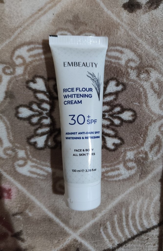 Embeauty pirinç unlu beyazlatıcı krem, SPF 30 koruması sağlar, koyu lekelerle savaşır ve cildi canlandırır. Tüm cilt tipleri için yüz ve vücutta kullanılır.