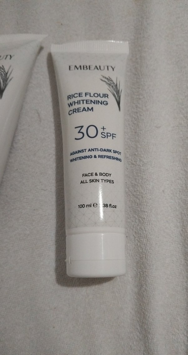 Embeauty pirinç unu beyazlatıcı BB krem, SPF 30 koruma sağlar. Yüz ve vücut için uygundur, koyu lekelerle savaşır ve tüm cilt tiplerini yeniler.