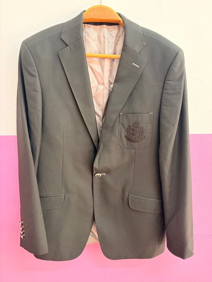 Ürün kullanıldı ancak diri durumda ve herhangi bir deformasyonu yok yalnızca bir kaç yerde dış süs dikişlerinde kopmalar var ama göze batmıyor. Ürünün omuzdan eteğe uzunluğu 77cm, etek genişliği 53cm, koltuk altından koltuk altına genişliği 52cm, kol uzunluğu 61cm. Çok şık düğme ve amblem detaylarına sahip. Çift taraflı iç cebi var. Çift yırtmaçlı bir ceket.