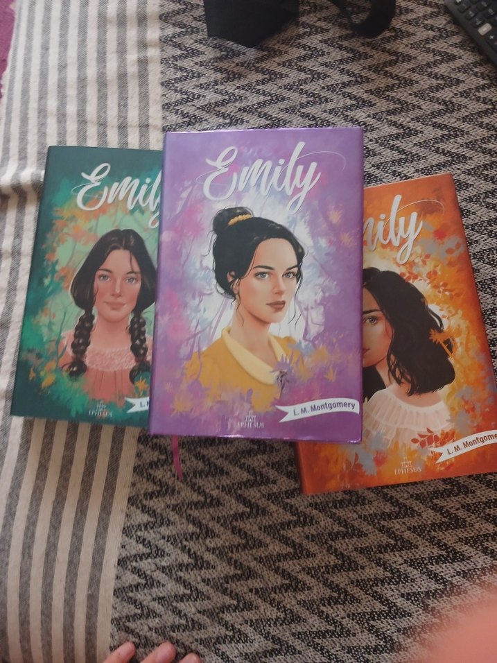 L. M. Montgomery'nin Emily serisi, farklı karakter portrelerinin yer aldığı üç roman kapaklı set olarak sunulmaktadır. Bi sayfasında yırtık vardır gorselde Belirttim hiç okumadım posterlerini bulursam yollarım ayrçları ile beraber