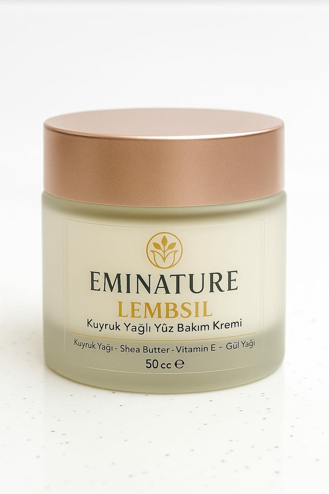 Eminature Lembsil yüz kremi, #kuyruk yağı içerir ve cildi nemlendirir. Günlük kullanıma uygundur.