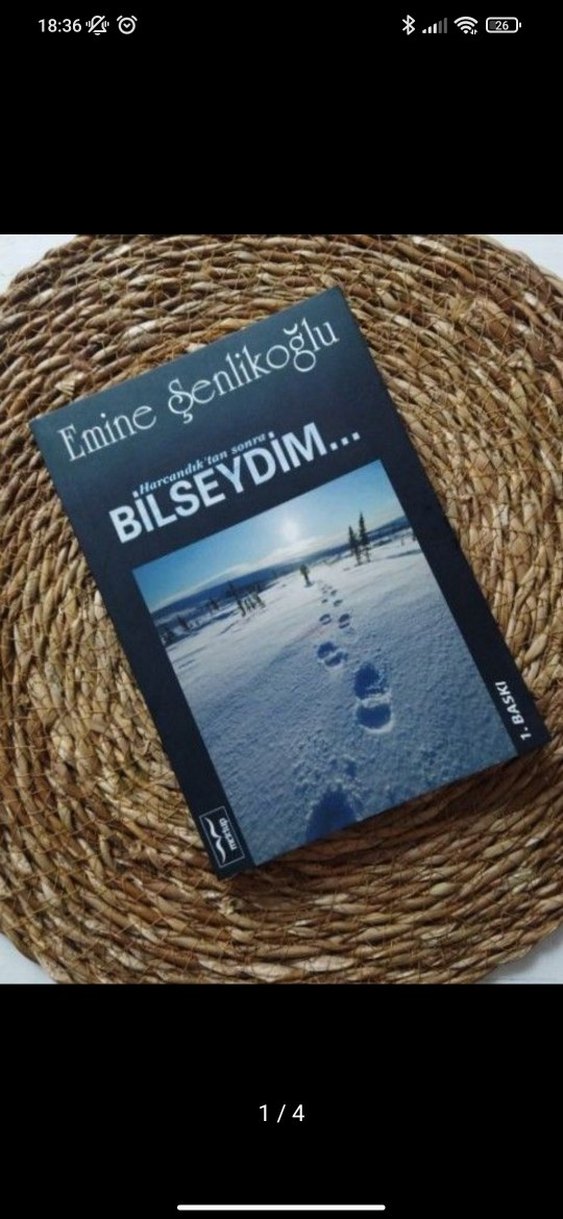 Emine Şenlikoğlu'nun 'Bilseydim' adlı romanı, kapakta karla kaplı bir manzara ile düşünce ve sonuç temalarını işliyor. ❄️