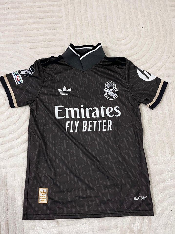 Siyah, baskılı, kısa kollu erkek forma, dar kesim ve bisiklet yaka ile. Velcro detaylı, 'Emirates Fly Better' ve HEATRDY teknolojili günlük kullanım için. ⚽