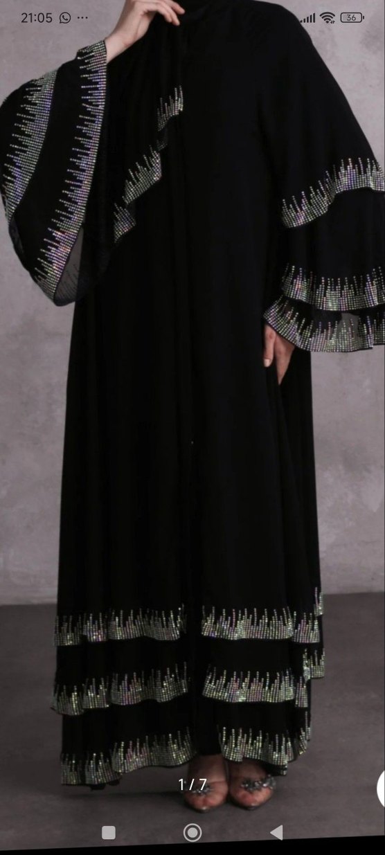 Siyah uzun elbise, bol kesimdir. aynı taşlı şalı ve kemeri dahildir. bir kez kullanıldı.