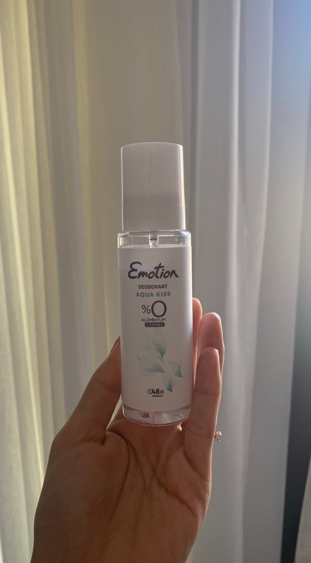 Emotion Aqua Kiss kadın deodorant, %0 alkol içeriğiyle 48 saat ferahlık sağlar ve hassas ciltler için nazik bakım sunar.