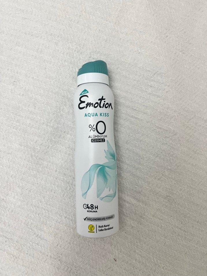 Emotion Aqua Kiss kadın deodorant, alüminyumsuz 48 saat koruma sağlar ve ferah bir kokuya sahiptirhic kullanılmadı .