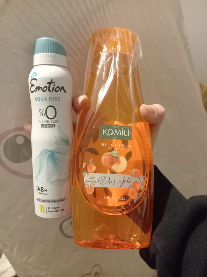 Emotion Aqua Kiss kadın deodorant alüminyum içermez ve 48 saat ferahlık sağlar. Komili Şeftali duş jeli meyvemsi ve ferahlatıcı bir temizlik sunar. Yeni ikili set birlikte fiyat. Farklı çeşitleri için sayfama bakabilirsiniz.