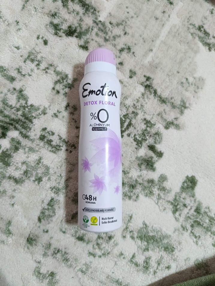 Sadece kokusuna baktığım için 2-3 kere sıktım onun haricinde hiç kullanılmamış bir üründür.Emotion Detox Floral kadın deodorant, alüminyum içermeyen formülüyle 48 saat koruma sağlar ve çiçeksi bir kokuya sahiptir.