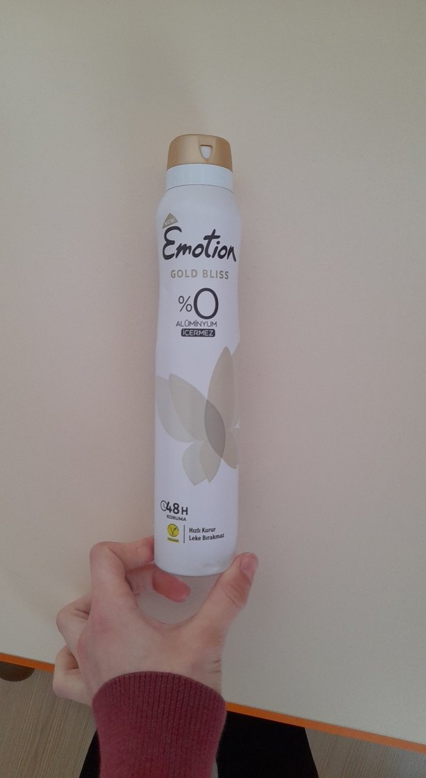 Emotion Gold Bliss kadın deodorantı, alüminyum içermeyen formülüyle 48 saat koruma sağlar. Ferah kokulu ve hassastır. Ürünün kokusunu beğenmediğim için satıyorum.
