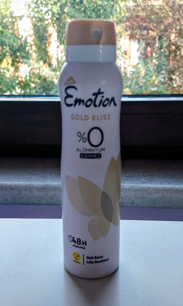 Emotion Gold Bliss kadın deodorant, 48 saat koruma sağlar ve leke bırakmayan nazik bir formüle sahiptir. Gün boyu ferahlık sunar.Yepyeni hiç kullanılmadı.