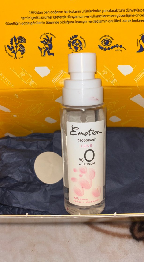 Emotion Love kadın deodorantı, alüminyum içermeden 48 saat koruma sağlar. Hafif ve ferah bir koku sunar.