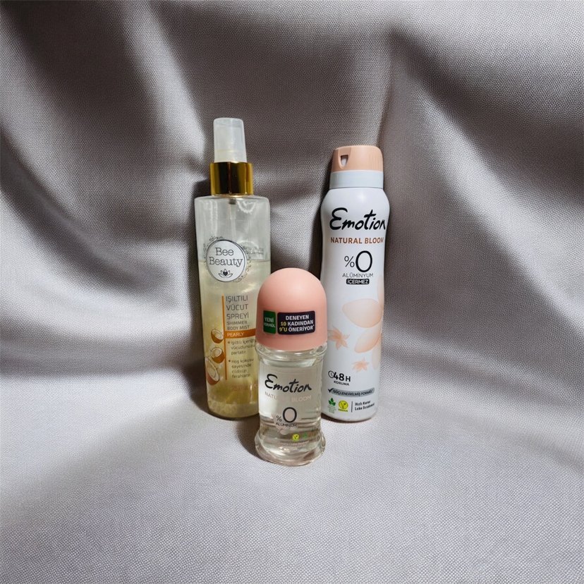 Emotion Natural Bloom alüminyumsuz kadın deodorantlar ve Bee Beauty incili vücut spreyi, 48 saate kadar kalıcı ferahlık sağlar. Emotion natural bloom deodorant ve roll on yenidir vücut spreyinden de biraz kullanıldı fotoğraflarda mevcuttur. #rollon #vücutspreyi #deodorant #kişiselbakım #bakımseti #kozmetik #günlükkullanım #temizlik #ferahkoku #uygunfiyat #kadınbakım #erkekbakım #parfümseti #bakımürünleri #hediyeset #butiksatis #kişiselürünler #trendbakım #rollondeodorant #vücutspreyisatis