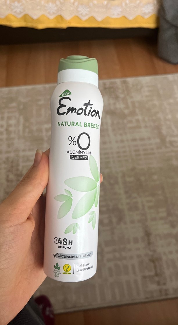 Emotion Natural Breeze kadın deodorant, %0 alüminyum içermez ve 48 saat koruma sağlar. Güçlendirilmiş formül ve ferah koku sunar. Hiç kullanılmamış fazla almıştım diye satıyorum acil paraya ihtiyacım var