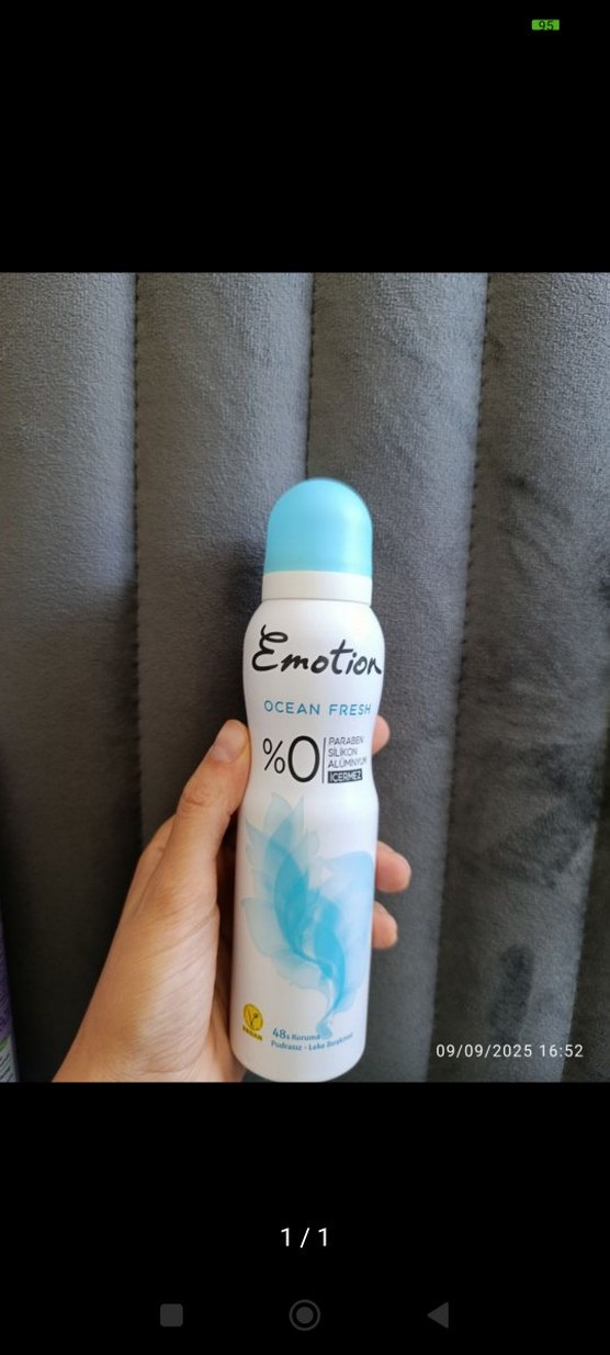 Emotion Ocean Fresh kadın deodorant, 48 saat koruma sağlar ve ferah okyanus kokusuna sahiptir. Paraben, alkol ve alüminyum içermez. Ürün sıfırdır.