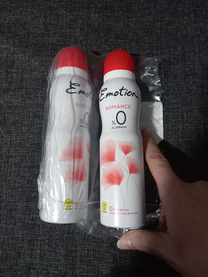 2 adet yeni birlikte set Emotion Romance kadın deodorant alüminyum içermez, çiçekli ve ferah koruma sağlar. Farklı çeşitleri için sayfama bakabilirsiniz.