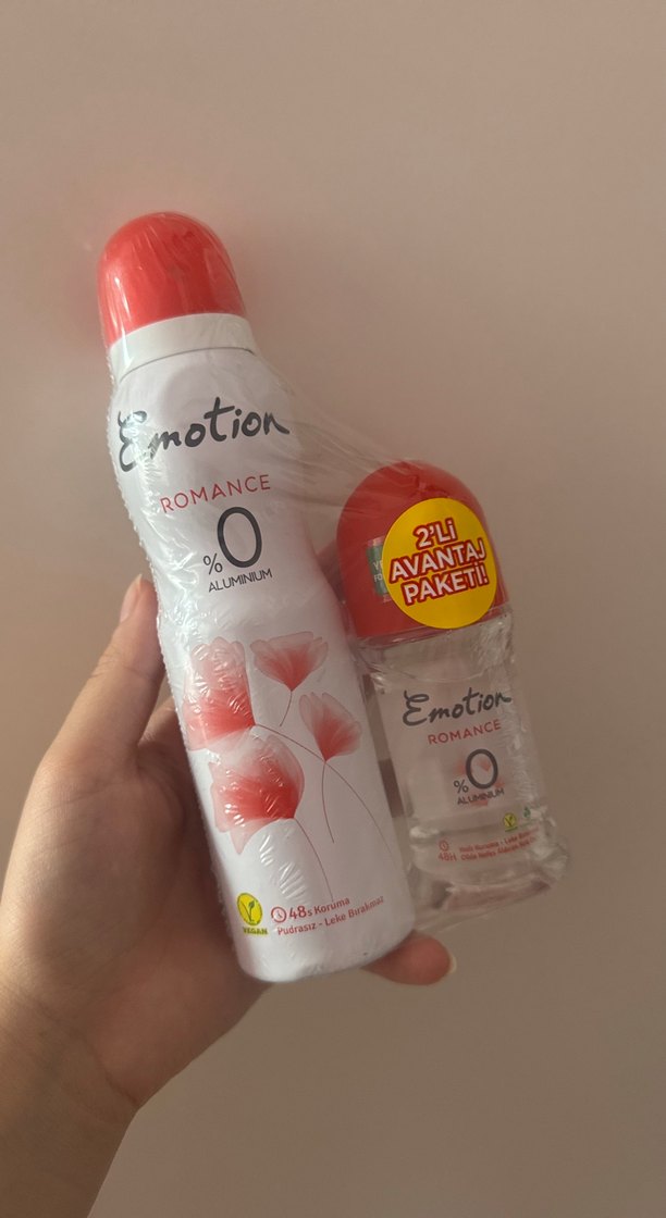 Emotion Romance kadın deodorant ikilisi, %0 alüminyum içermez. Sprey ve roll-on çeşitleriyle ferah ve kalıcı koruma sağlar.