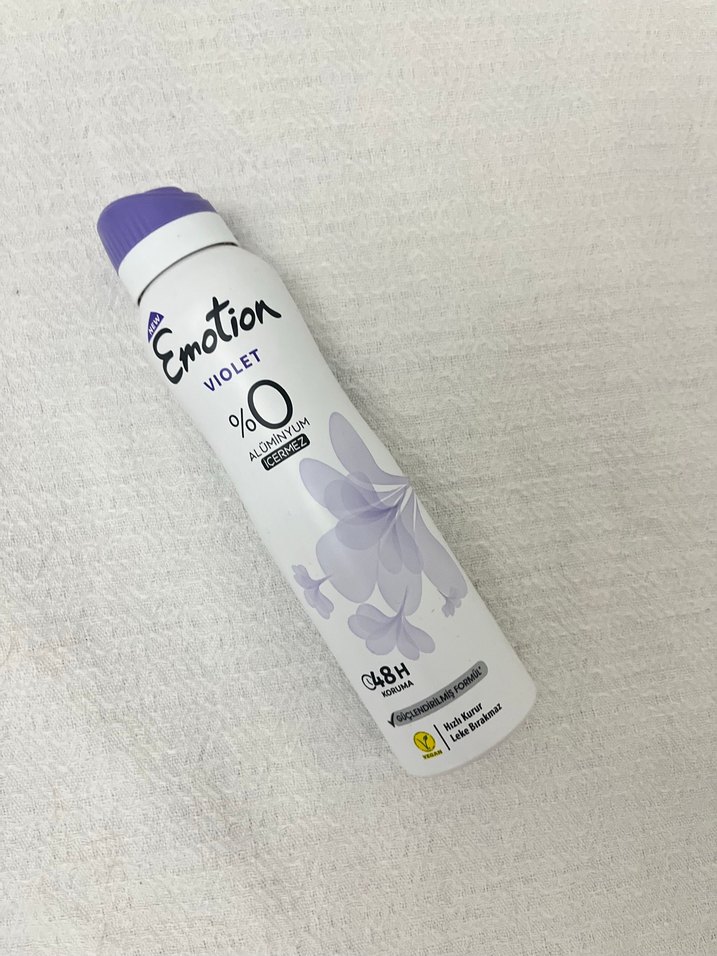 Emotion Violet kadın deodorant, alkol içermeyen formülü ve menekşe kokusuyla 48 saat ferahlık sağlar. Fazlalıktan kaynaklı satiyorum kokusu çiçeksi 1 defa sıkılmıştır ürünlerin yanında hediye yollanmaktadır