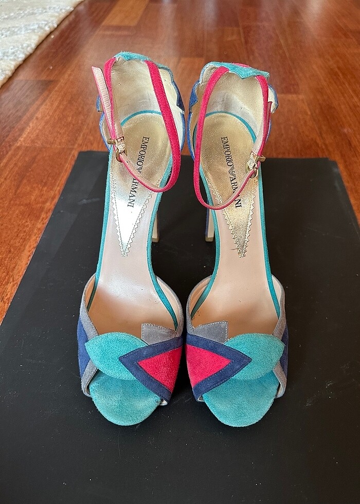 Çok temiz hiçbir problemi yok kutusu mevcut değil turkuaz lacivert gri narçiçeği karışık renklerde de pekçok kıyafete uyumlu, topuk boyu 13 santim iç ölçüsü 26 santim platformu iki santim, XEDJ73 65 40