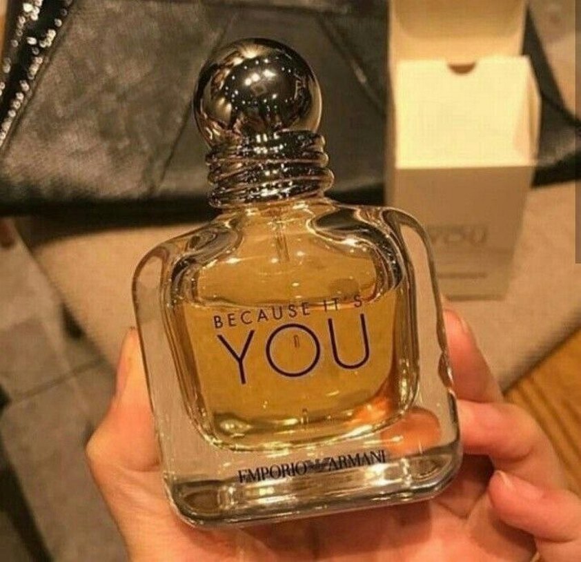 Emporio Armani Because It's You Kadın parfümü, parlak bej şişesi ve gösterişli, karşı kültür tarzıyla dikkat çekiyor. Kokusu öne çıkıyor. ✨