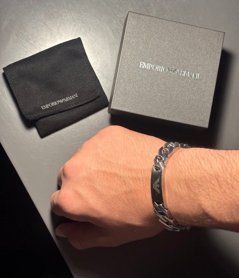 Emporio Armani marka, minimalist tarzda gri renkli zincir erkek bileklik. Klasik şıklık için zarif tasarım ve marka logosu bulunur. Kitapçığı kutusu ve taşıma kutusu yanında bulunur tamamen orijinaldir.