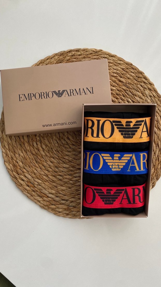 Emporio Armani erkekler için üçlü boxer seti. Koyu renklerde, baskılı logo detaylı ve dar kesim. Kutusunda şık sunum. A+ kalite barkotlu üründür 36/1 regule kumaştır Diğer bedenler mevcuttur
