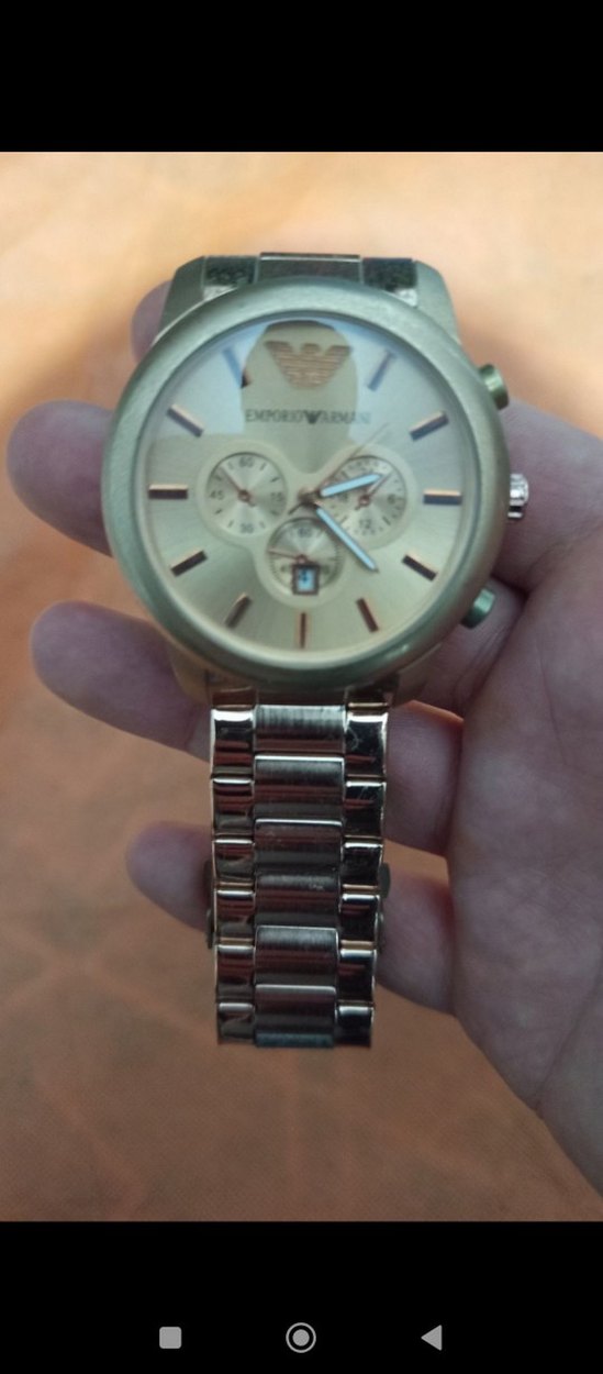 Marka: Emporio Armani Kasa/Kordon: Gold ton metal kordon, katlanır kilit Kadran: Şampanya ton, baton indeks, 3 alt kadran, tarih penceresi (6 yönü) Mekanizma: Quartz (pilli)