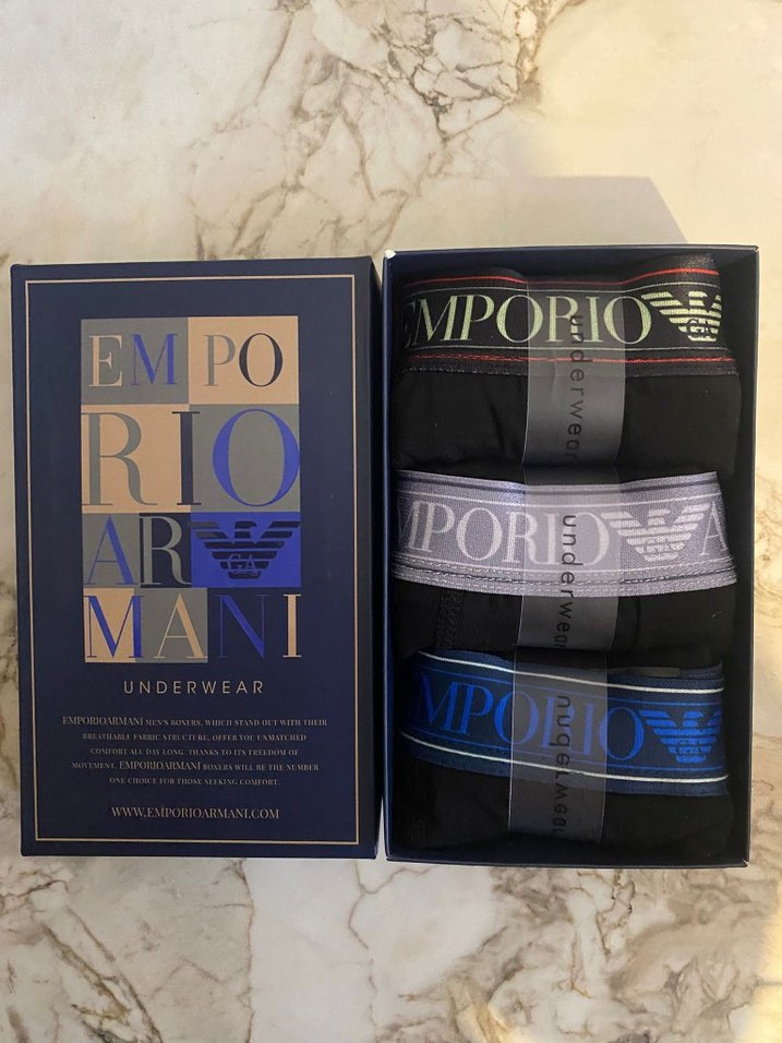 Emporio Armani erkek boxerları, normal boyda ve regular fit olarak tasarlanmıştır. Siyah zemin üzerinde baskılı desene sahiptir. Üçlü set içinde siyah, gri ve mavi bel bantları bulunur. ✨ Bütün modeller mevcuttur ✨ Bütün bedenler mevcuttur ✨ Yırtılmaz ve Yıpranmaz ✨ Kaşıntı ve rahatsızlık vermez ⚠️ Sipariş vermeden önce bedenizi yazınız ⚠️