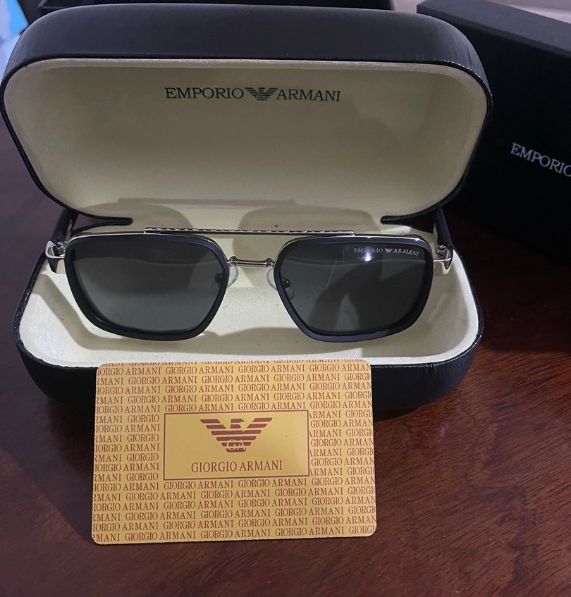 Emporio Armani erkek güneş gözlüğü, koyu gri camlar ve şık metal çerçeve ile modern klasik tasarıma sahiptir, markalı kutusunda sunulur. ️