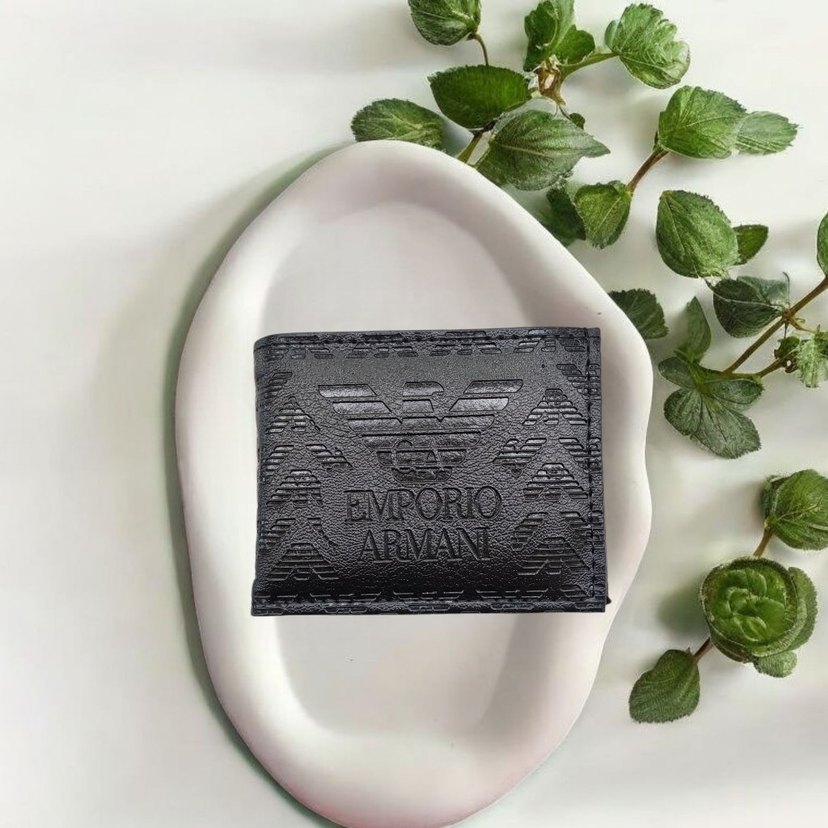 Emporio Armani siyah erkek cüzdanı, baskılı desene ve klasik şıklığa uygun minimal tasarıma sahiptir.