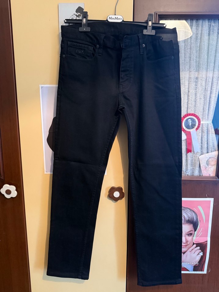 Siyah regular fit erkek kot pantolon, tokalı detaylı, günlük sokak giyimine uygun sade ve desen içermeyen tasarım. Emporio armani erkek jean az kullanıldı yurt dışından alındı orijinaldir