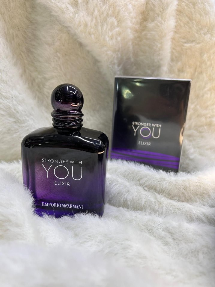 Emporio Armani Stronger With You Elixir, koyu mor şişede, çağdaş ve samimi bir erkek parfümüdür.