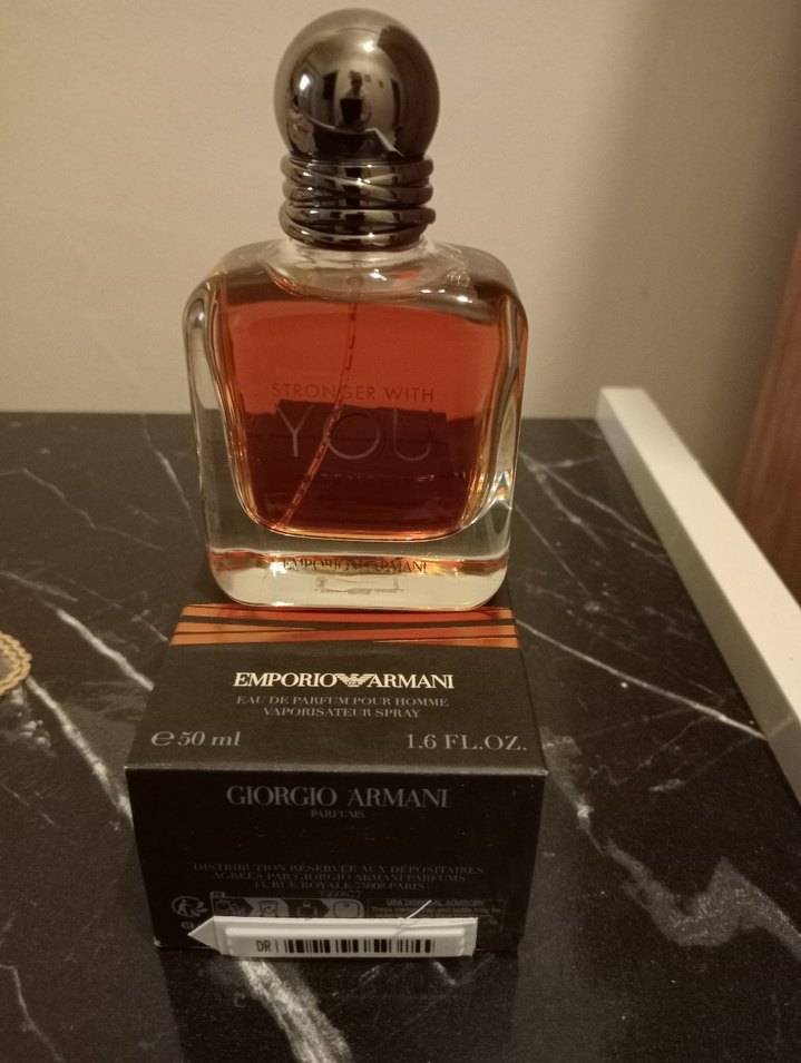 Emporio Armani Stronger With You erkek parfümü, 50 ml, bej kutulu, koyu amber sıvılı, parlak gümüş kapaklı. Giorgio Armani markalıdır. hediye gelmiştir hiç kullanılmadı.ihtiyaç fazlası.