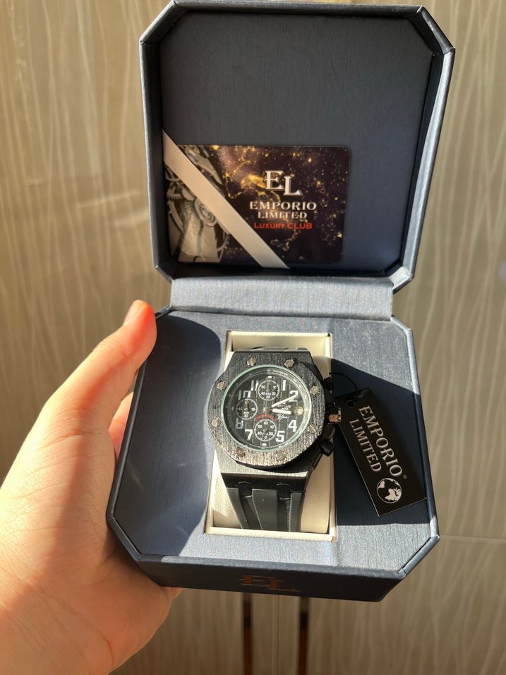 Emporio Limited markalı, çoklu kadranlı ve sağlam kayışlı siyah erkek saati. Sokak modasına uygun tasarım, kutusunda teslim edilir. ⌚