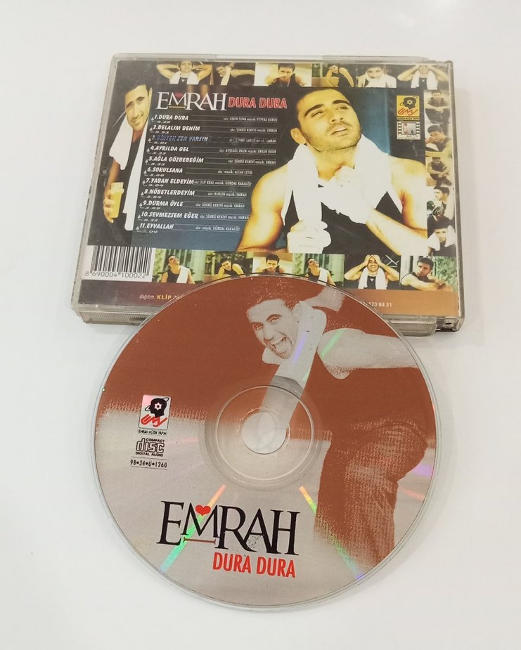 Emrah'ın 'Dura Dura' CD albümü. Kabında küçük çatlak var. CD çalışır durumda. Denenmiştir.